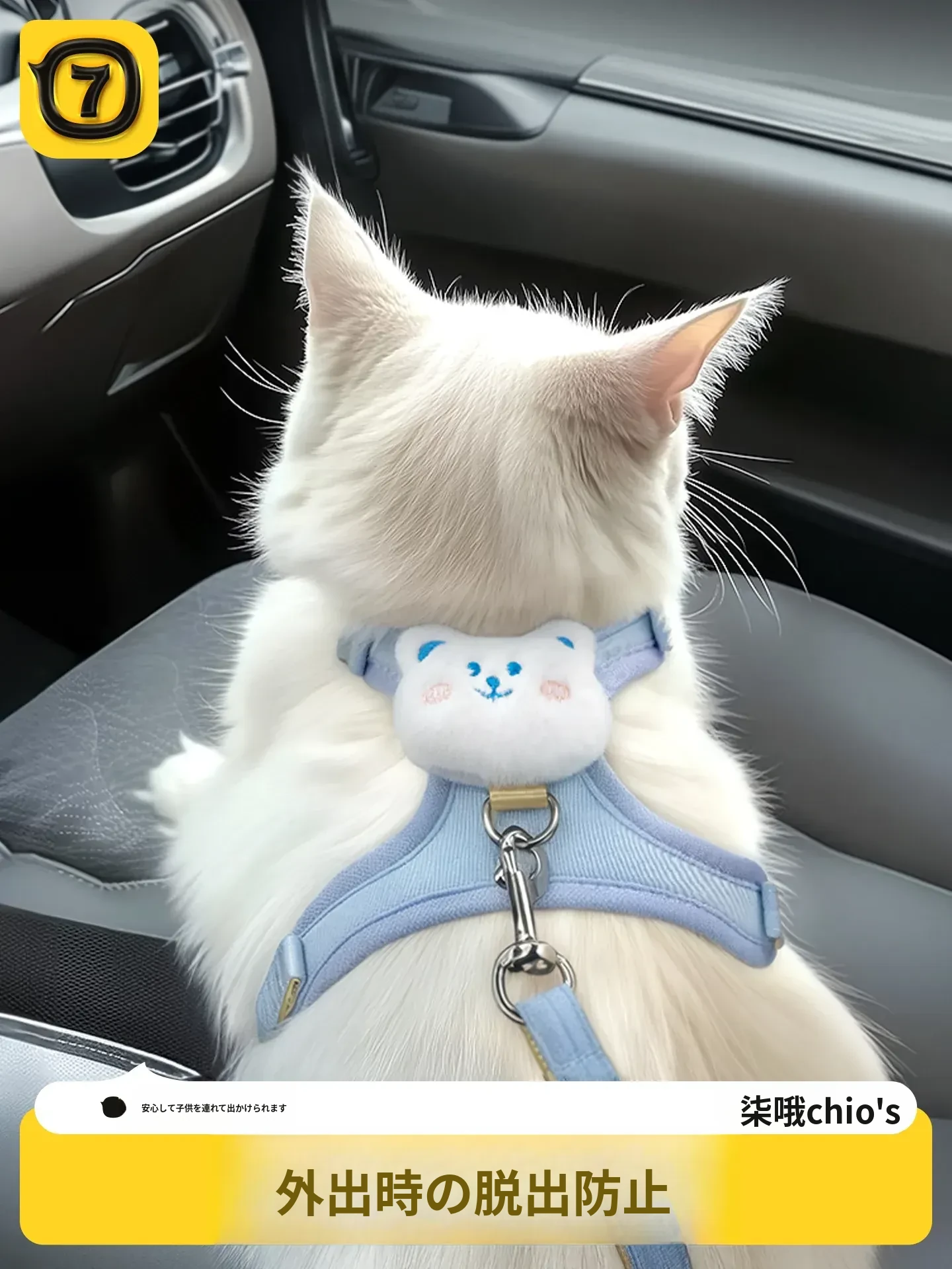 かわいい子猫に最適!調整可能な猫用リードとハーネスセット - 小型犬にも対応!お散歩や外出時に安心・快適なペット用品です。