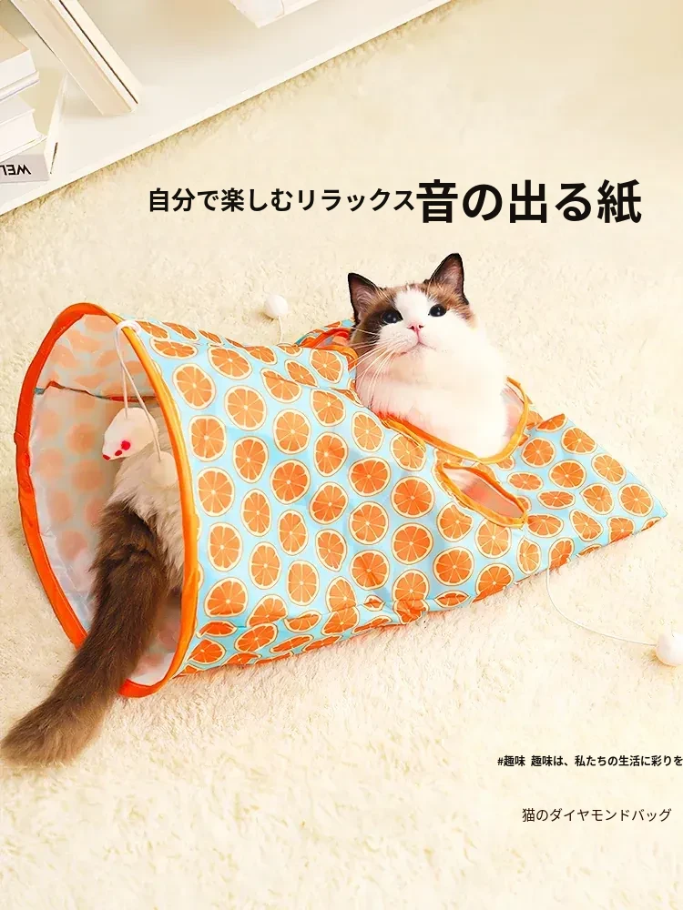 猫ちゃんが夢中になる!音が鳴るおもちゃ付きキャットトンネル - ネズミ型噛みごたえ抜群、遊び心をくすぐるペット用品!