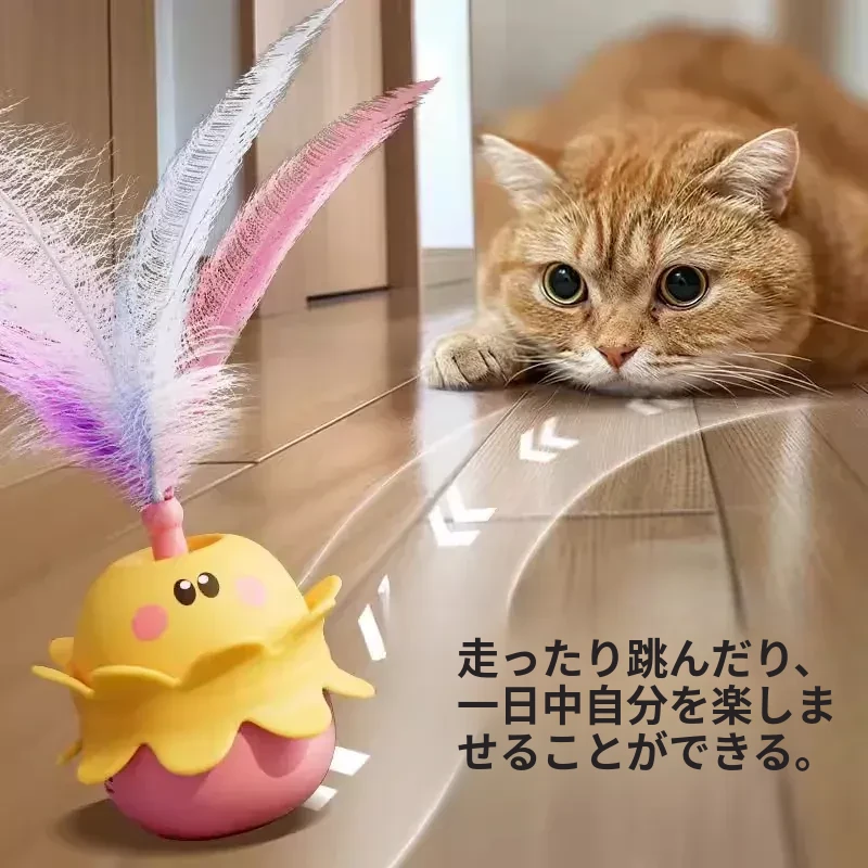 猫ちゃんが夢中になる!倒れない羽毛付きおもちゃ、猫のストレス解消&運動不足解消に最適な自動おもちゃ。楽しい音で猫を引き寄せ、遊び心をくすぐります!