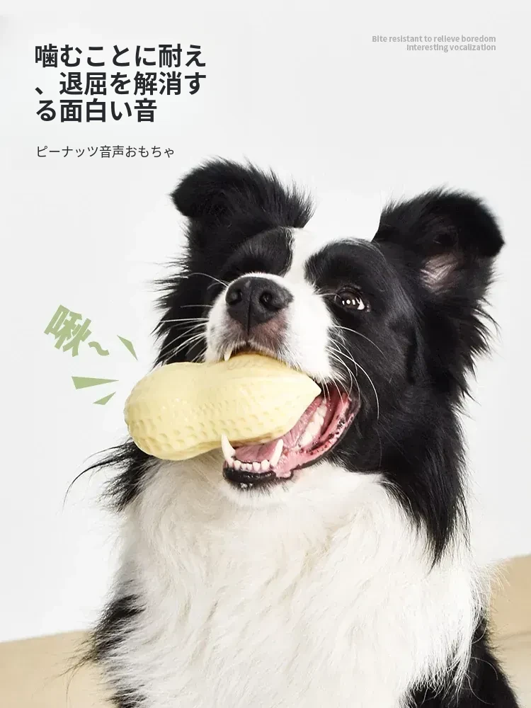 犬用おもちゃ 耐噛み・歯磨き・音が鳴るボール ピーナッツ型 ストレス解消に最適!子犬・コーギー・大型犬向け ペット用品