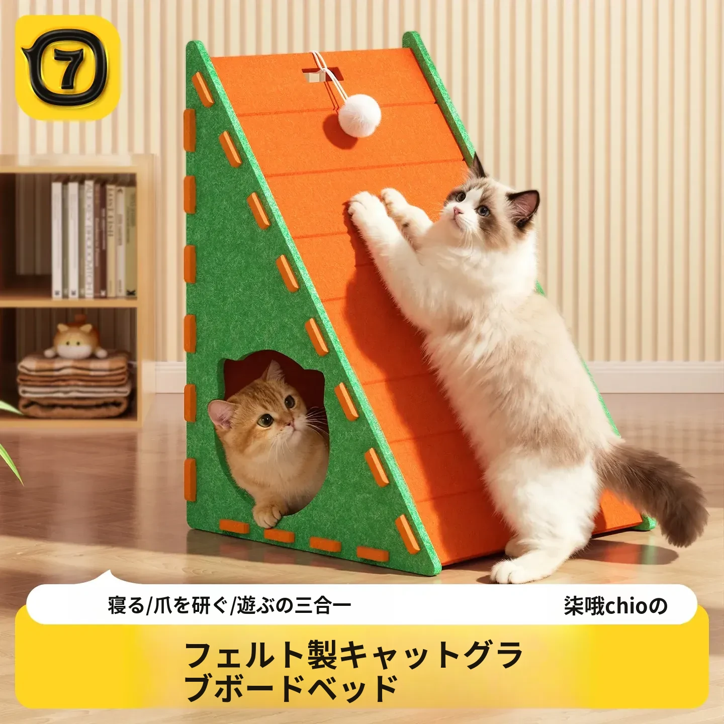 三角形キャットタワー&キャットスクラッチャー|耐久性抜群のフェルト製で猫ちゃんも大満足!ソファを守りながら遊べる、かわいい猫のための必須アイテム!