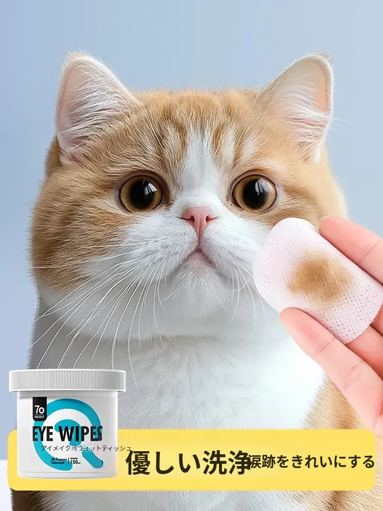 猫の涙やけを一掃!アイケア専用ウェットティッシュ - ペルシャ猫・ビション・テディ・犬用ペットクリーニング用品