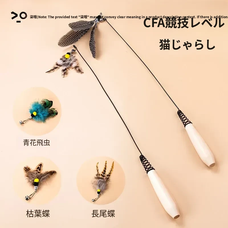 CFA大会優勝のキャットボール付き長い猫おもちゃ!替え羽根で楽しさ倍増!子猫や小さな猫ちゃんも大喜びのストレス解消アイテム!