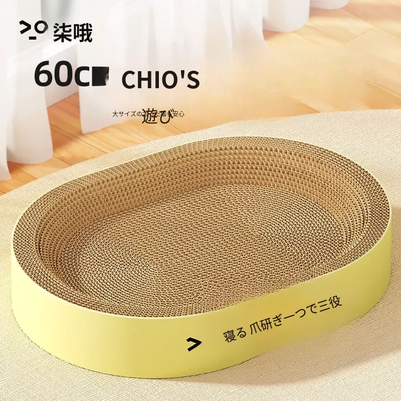 特大号エルプ型キャットスクラッチャー&ベッド一体型!耐久性抜群、剥がれにくい波形紙製で、猫ちゃんの爪研ぎも安心。楽しく遊んで、癒しのスペースを提供します!