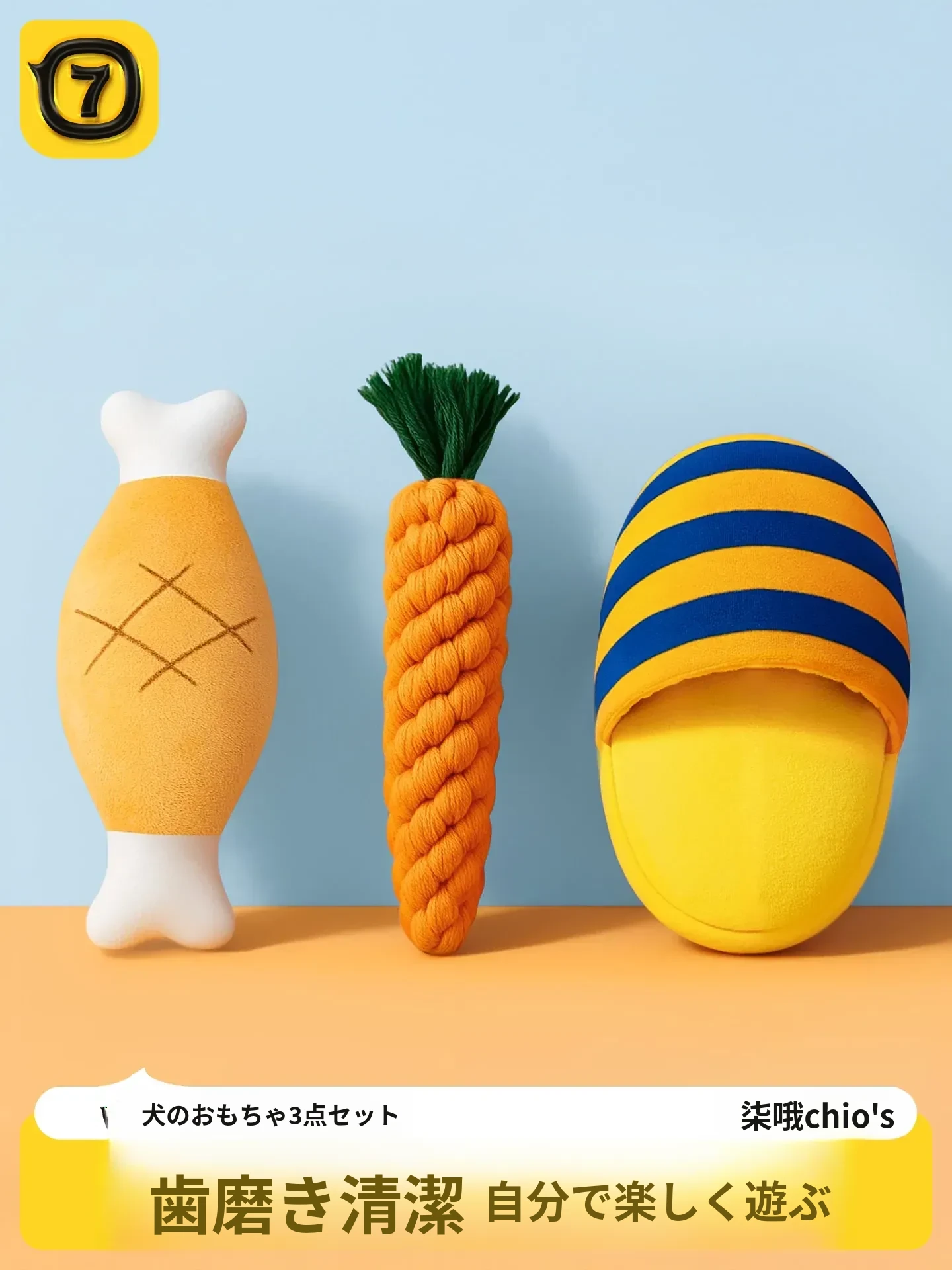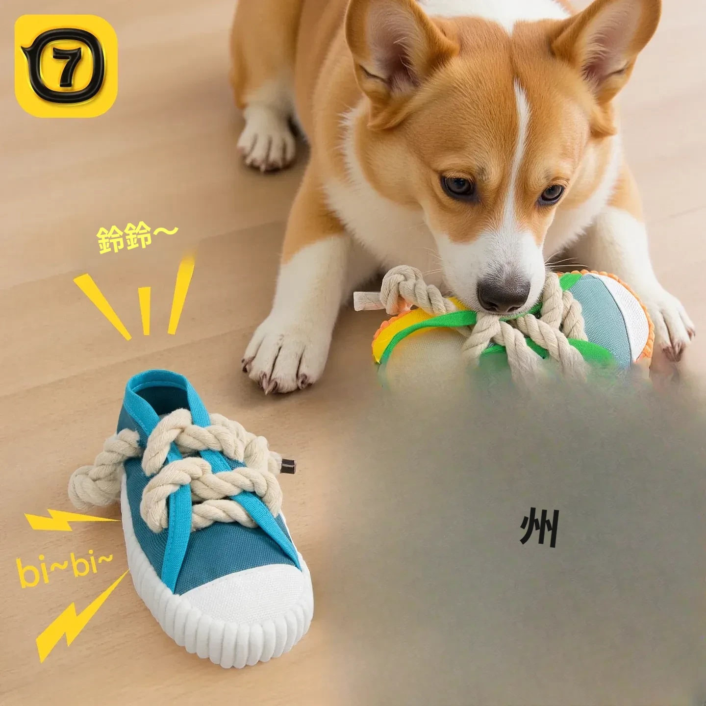 犬用おしゃべりスリッパおもちゃ!自分で楽しめるストレス解消アイテム。丈夫なロープ結びで歯磨き効果もあり、中小型犬の体力消耗に最適!愛犬の遊び時間を充実させる必須アイテム!