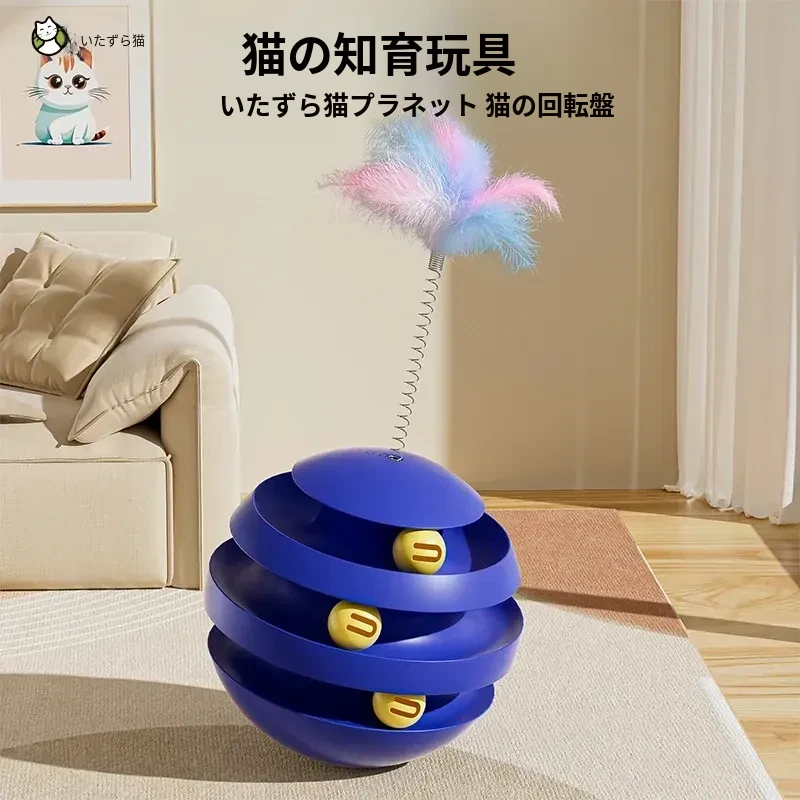 猫ちゃんを夢中にさせる!倒れないおもちゃ付き猫じゃらし - 自分で遊べる回転盤で、元気な子猫やペットのストレス解消、体力消費に最適な猫用品!