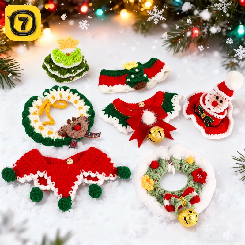 ペット用クリスマスデコレーション衣装!かわいい犬用エプロン、猫ちゃんの新年帽子、ビションフリーゼ用の魅力的な首輪とマフラー。愛するペットに特別な装いを!