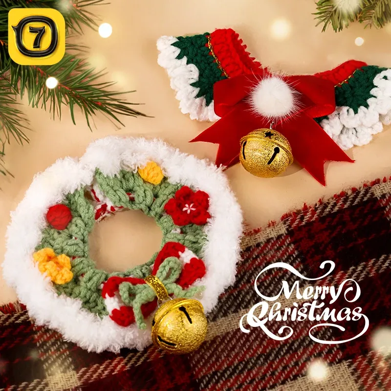 クリスマスにぴったり!可愛い子猫・子犬用の華やかな衣装とおしゃれなネックウォーマー、スタイリッシュなよだれかけ、スカーフ、レースアクセサリーが揃ったセットで、愛するペットを特別な日に演出しましょう!